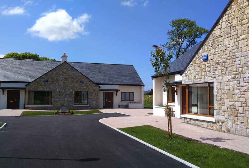 Phase 1 of this development comprised 8 units of 1 and 2 bedroom semi-detached houses on this edge of town greenfield site. John Halligan Architects were appointed design team leader for the project, commissioned by St. Vincent de Paul and Mayo County Council. The houses form a cluster surrounding a landscaped green space. The design promotes pedestrian priority and generates an environment of communal involvement. Seating areas are interspersed along with planters to facilitate forming relationships between neighbours. Each house is fully accessible and meets the relevant standards and requirements for disabled access. The development has received praise from residents for design and comfort levels.